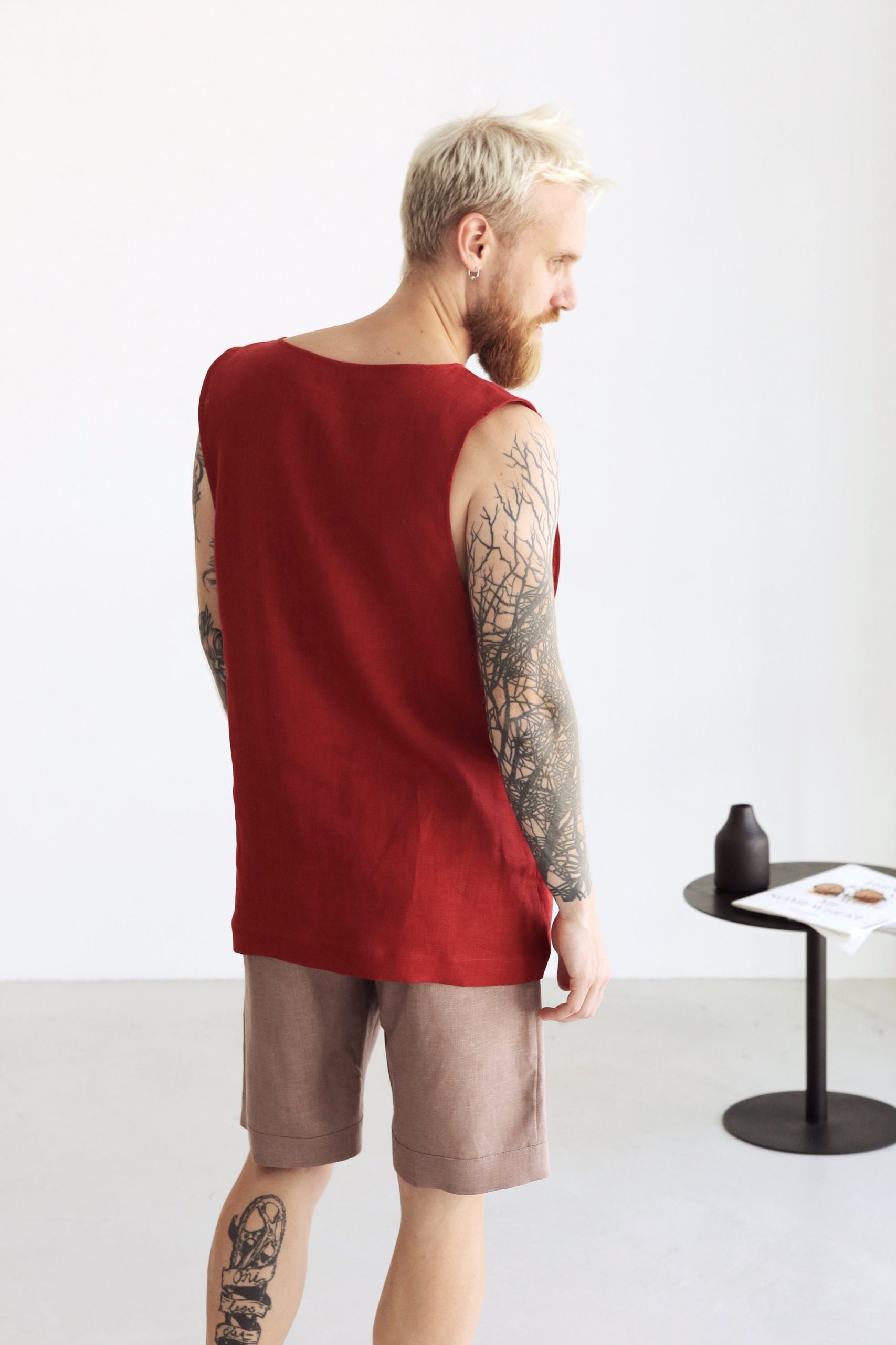 Mens Sleeveless Linen T Shirt Singlet Summer For